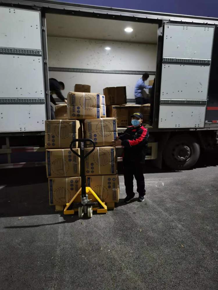 项目所采购的口罩正在装车