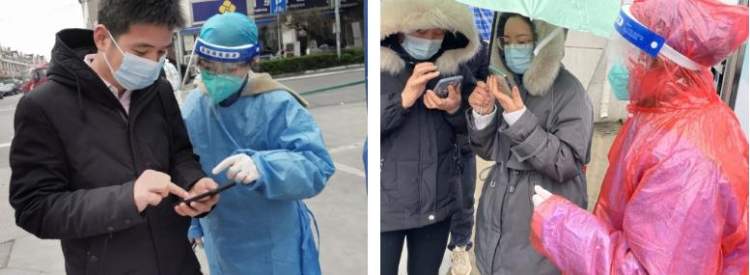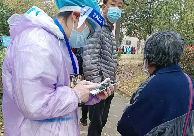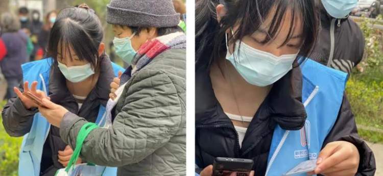 赵依依同学在志愿工作中,主要负责帮助老年人操作核酸检测码,以及维持居民排队秩序。