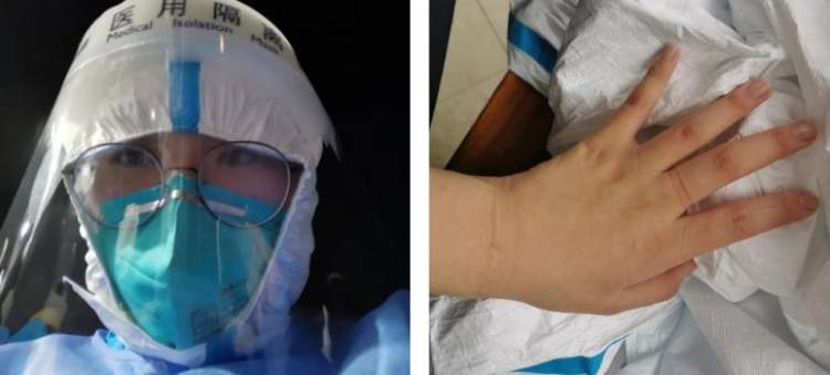 赵依依:在忙碌的景象中,我看到医务人员的脸上都被口罩勒出了印子,护面罩上蒸出了汗但仍在继续,戴着橡胶手套的手被水都泡出了手纹……我在这次志愿服务过程中体会到医护人员的不易。脱下防护衣,只是普通人;披上防护衣,我们都是逆行者!我相信,有这样一群人守护上海,这次疫情一定会早日消散!
