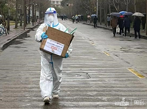 学校进入闭环管理后,药学院思政教师高杏第一时间逆行返校,奔赴西49宿舍担任驻楼思政。