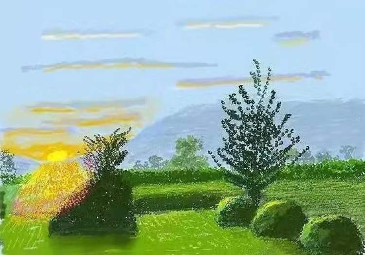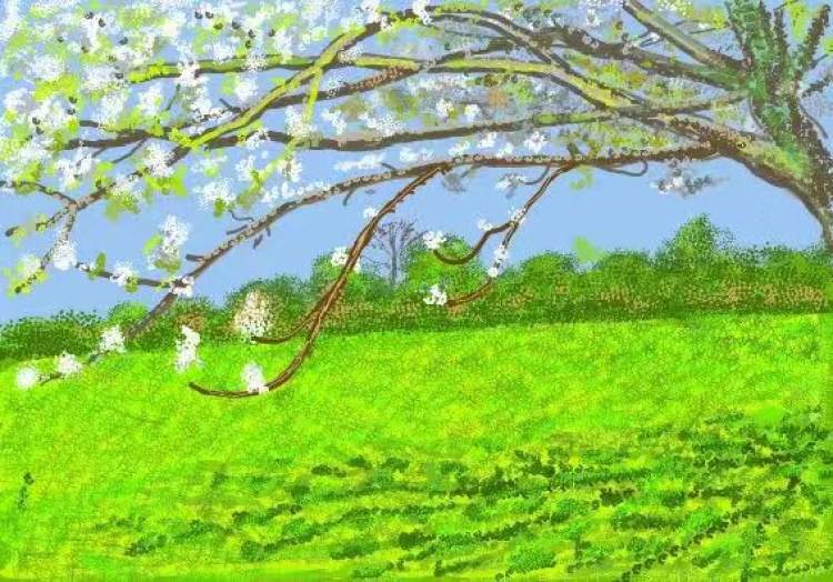 2020年的春天,新冠疫情席卷全球,著名英国艺术家大卫·霍克尼被封锁于法国诺曼底乡村的工作室,他不但没有陷入焦虑与抑郁,还愈发热情地投入对自然美景的描绘,画下数百幅iPad作品,并将它们发布在社交平台上,让全世界的人都能目睹春日繁花绽放的美景。