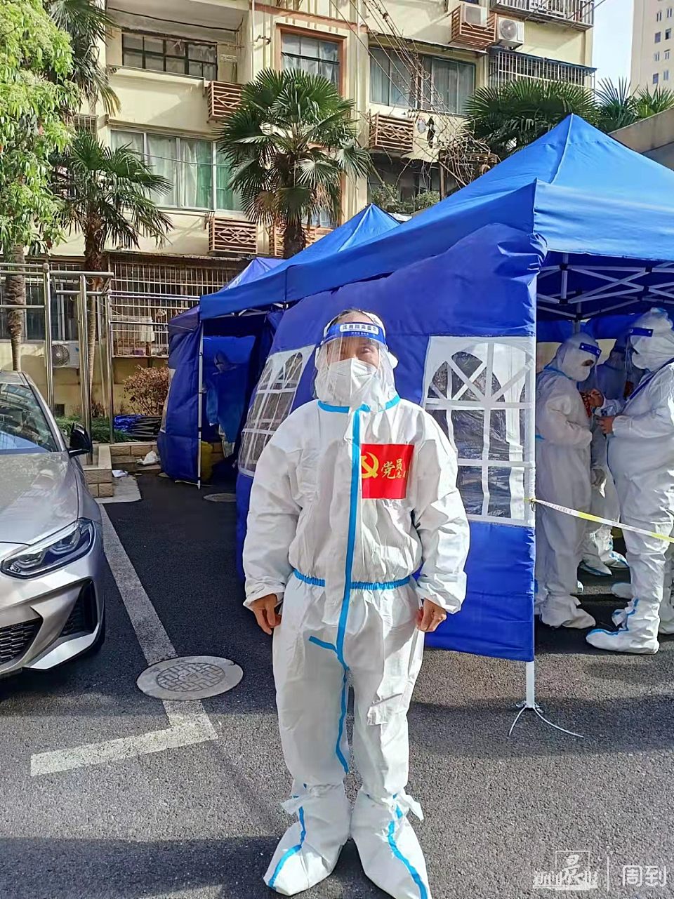我积极响应上海市静安区组织部和街道号召,第一时间向社区党组织报名参加抗疫志愿者,和社区一线的社区干部并肩战斗,抗击疫情。今天,当我20多年后再次穿上胸前贴有“党员志愿者”和“抗疫必胜”红色标识的白色连体防护服时感慨万千!