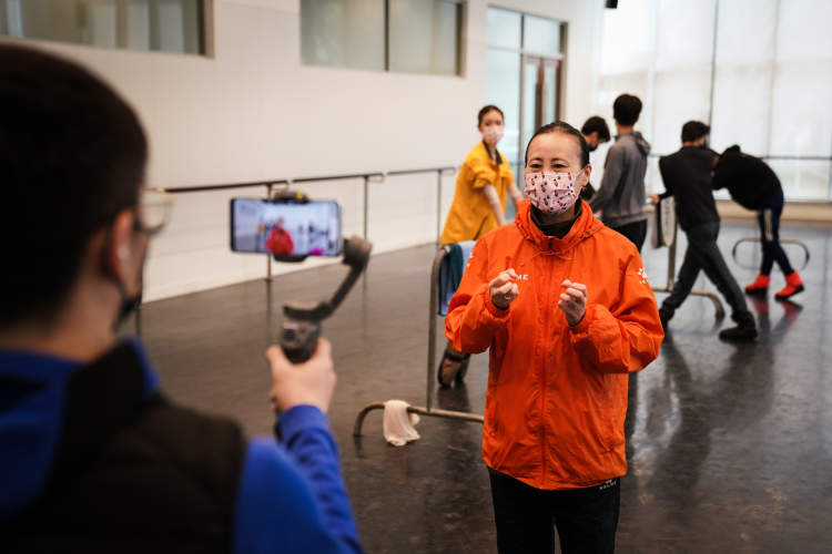 3月30日,辛丽丽团长还带领上芭演员在排练厅直播了一节芭蕾大师课,让大家跟随镜头走进上芭的排练厅,了解和感受演员们“停演不停功”坚持排练的日常。
