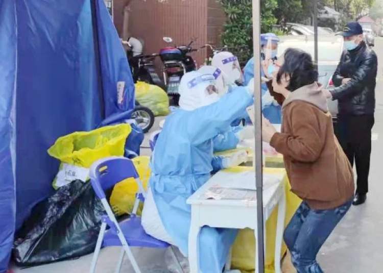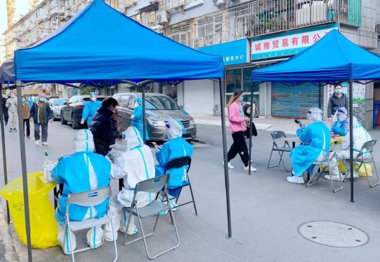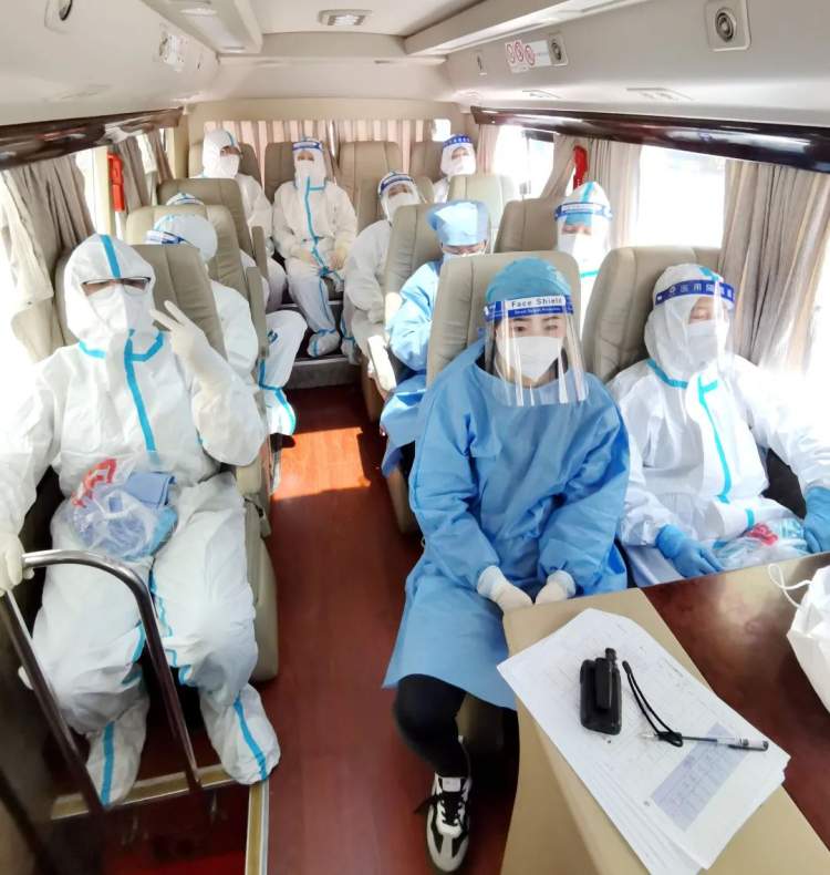 凌晨4点,大巴抵达石泉路街道,医护人员们不顾舟车劳顿,立即穿戴好防护装备,迅速到达相应点位开展核酸检测工作。