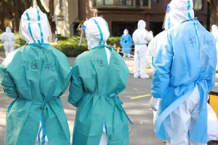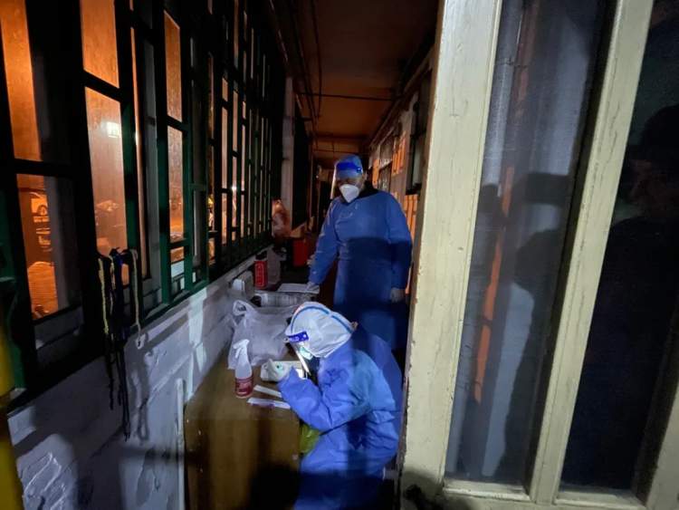 前天晚上10点,安徽省淮北市各大医院的300名医护人员乘7辆大巴出发,经过10小时的长途跋涉,在昨天早上的晨光中抵达南翔,开始核酸采样工作。