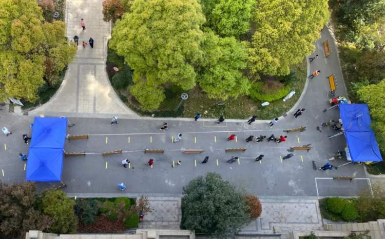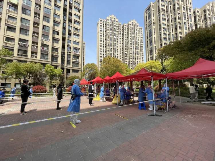 南翔居民秩序井然,大家分楼栋、分时段进行采样,保持两米间隔,全程“不走回头路”,避免交叉感染。