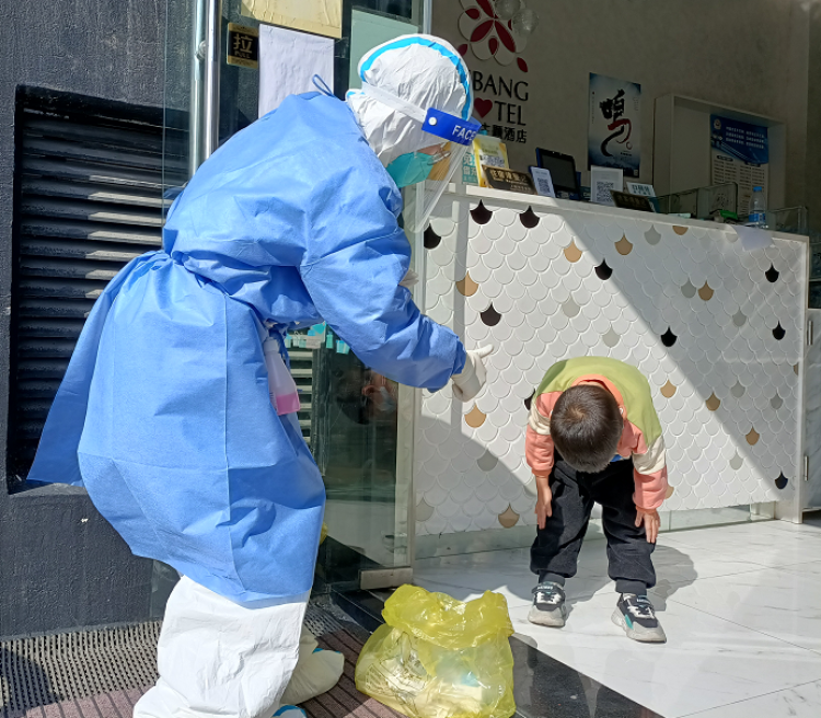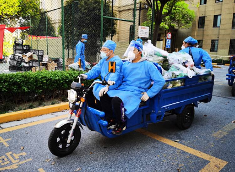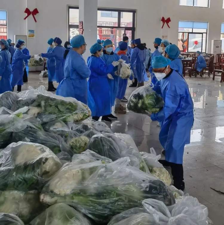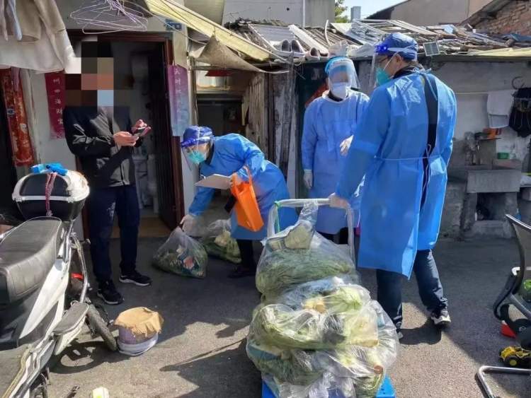 除了医疗保障,“小蓝”们还是搬运工,为居民跑腿送菜、送快递、送药,解除居民的后顾之忧。