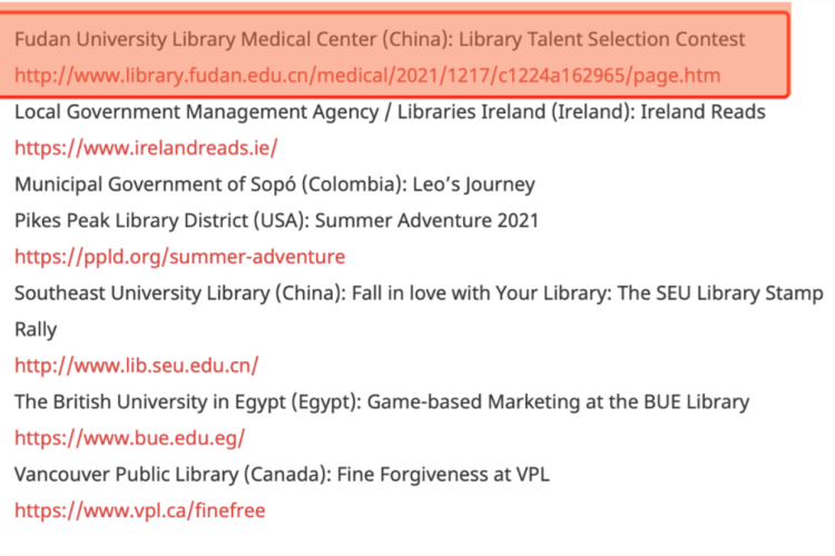 日前,国际图书馆协会联合会(IFLA)公布了2022 IFLA 国际营销奖的评比结果。复旦大学图书馆医科馆(以下简称“医科馆”),凭借在去年盘点的“医科馆之最”“医科馆达人”等栏目组成的“图书馆达人冲冲冲(Go! Library Stars)”项目,荣获十大最富创意的项目之一。