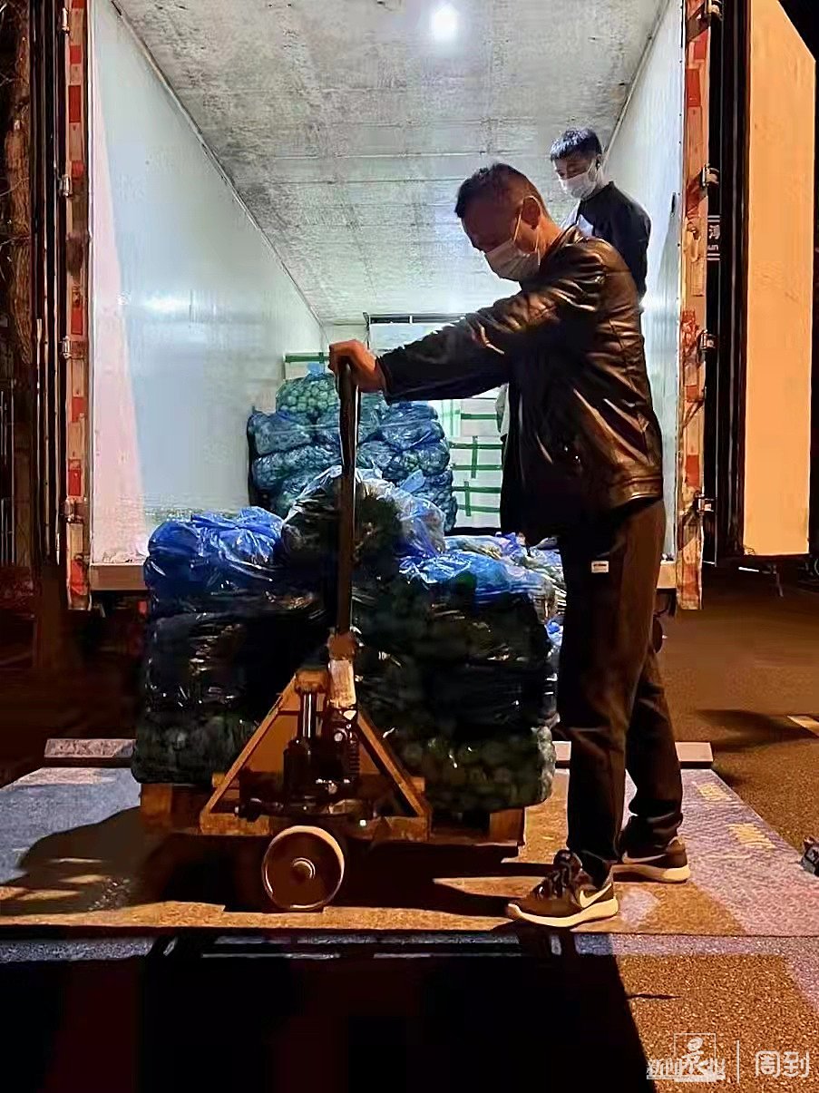 当晚12时许,蔬菜车终于到达龙湖紫都城小区。小区业委会等工作人员马上在志愿者群中进行了召集,此时已至深夜,小区中大多数人已经入睡。但仍有许多志愿者守在了手机旁,在接到消息后,他们第一时间下了楼。