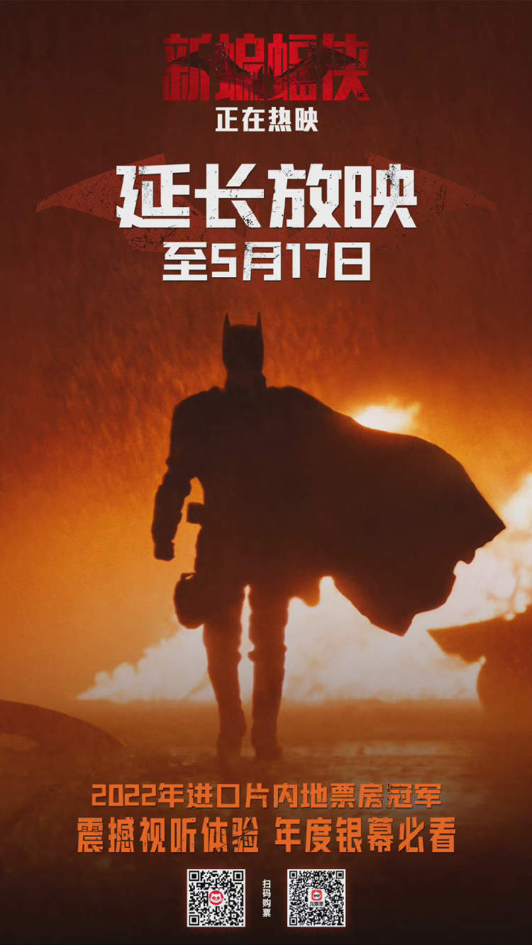 3月18日上映的DC超英电影《新蝙蝠侠》今天宣布密钥延期,放映期延长至5月17日。