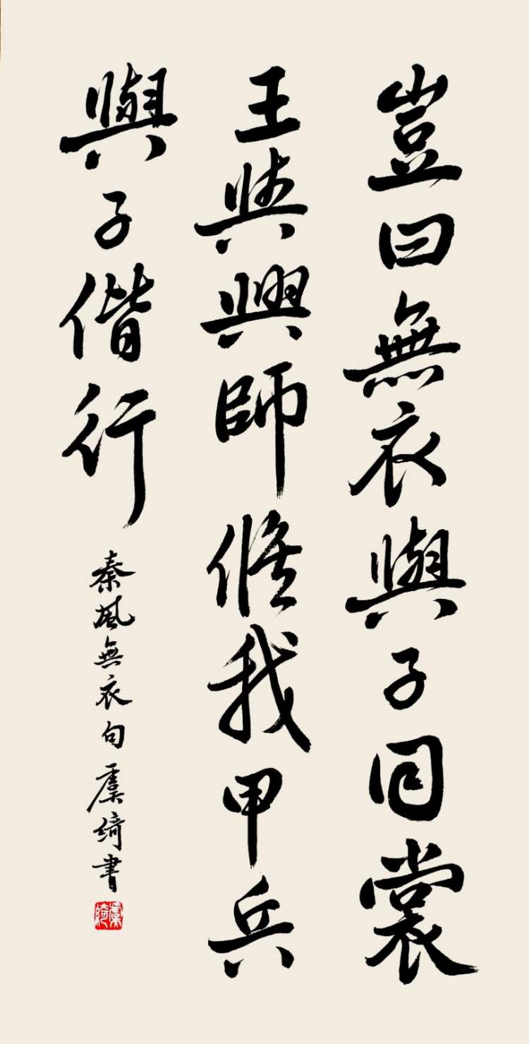 书法《岂曰无衣,与子同裳。王于兴师,修我甲兵。与子偕行》 作者:虞绮
