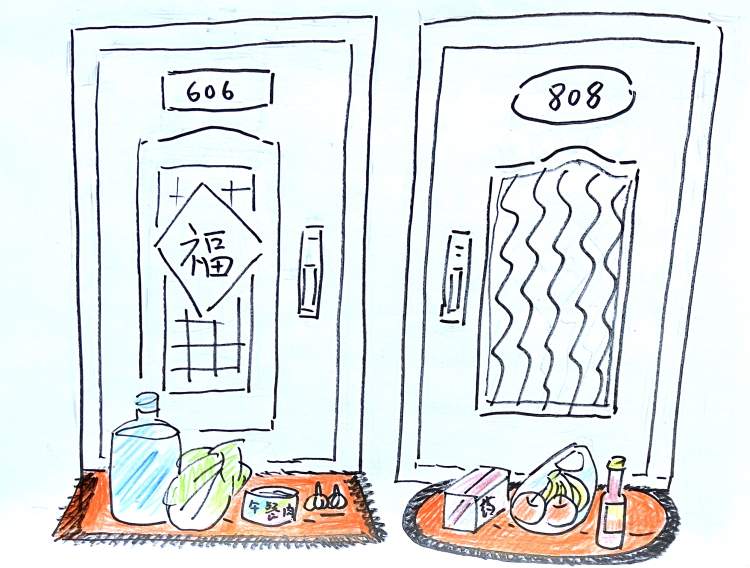 作品说明:这两天的小区还是封闭着,昨晚门铃响了,有谁会来啊?快递也进不来,开门见是小区志愿者送菜上门了。