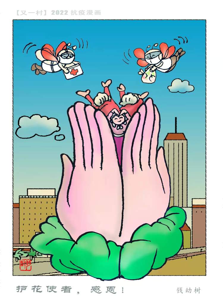 今天,我们选取了上海书画家和漫画家的一批作品,让我们为上海加油,祈愿安好。