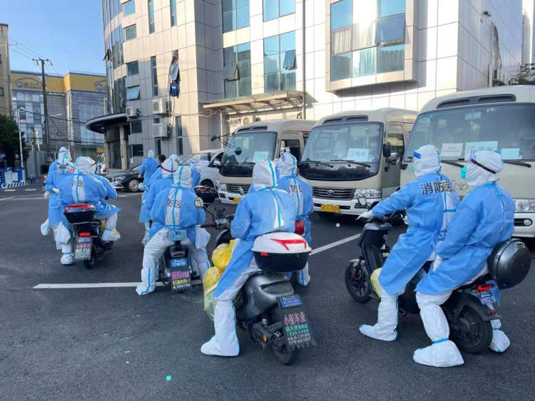 上海消防医院办公室主任李成亮说,为了行动方便,他们基本上都是两人合骑一辆电瓶车赶赴各个小区。