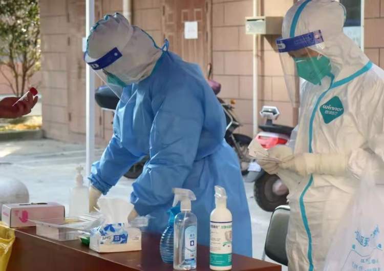 蒋皓琳做事严谨,每栋楼的样本数量都详细记录,并及时向上级报告。每次核酸检测后,蒋皓琳为了确保数据准确无误,安全处理医疗废物,总是那个最后一个离开岗位的人。