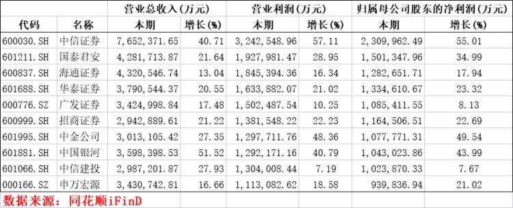 此外,目前净利第十的申万宏源去年实现合并营业收入343.07亿元,同比增长16.66%,归属于上市公司股东的净利润93.98亿元,同比增长21.02%;基本每股收益0.38元;加权平均净资产收益率10.26%。去年公司投行业务收入行业排名从上年的第九升至第七,同比增长47.15%。因积极推进“专精特新”战略,申万宏源在新三板挂牌企业持续督导596家,市场排名第二,其中创新层持续督导121家,市场排名第一;北交所累计过会7家,排名行业第二。