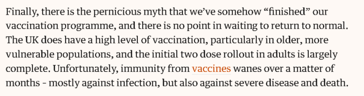 而在英国,英国《卫报》于上周刊登了伦敦大学学院临床研究部门主任佩格尔(Christina Pagel)撰写的一篇分析英国最近感染人数暴增的文章。