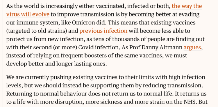 再次,人们误以为疫苗的接种工作已经完成了,所以现在应该放开了,比如英国的疫苗接种率就很高,尤其是老年人等弱势群体。然而,疫苗的保护力往往在几个月后就会逐渐消失,加强针虽然能提供更多帮助,但也需要时间去完成接种。与此同时,病毒也在继续变异,奥密克戎毒株就已经突破了之前疫苗构建的免疫防线,这意味着之前的疫苗产生的保护力已经不足够对抗新的疫情,不少二次感染的人就已经感受到了这个现实。所以,除了疫苗,眼下还需要其他防疫措施去减少疫情扩散。如果急着恢复常态,反而会导致更多对日常生活的扰乱,导致更多人发病,并给医疗资源造成更大的压力。