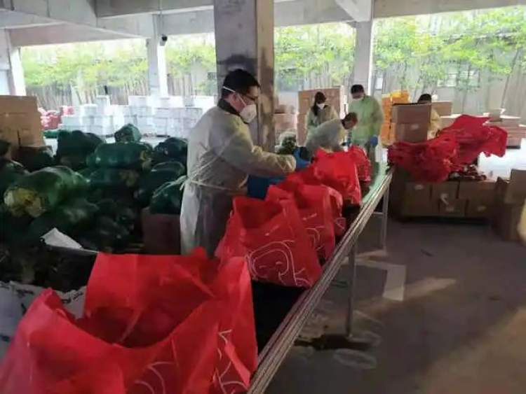 3月28日晚,江川路街道按照闵行区委区政府统一部署,迅速筹措大米、食用油、蔬菜、副食品等生活物资,以4天为1个周期为辖区近9万户居民提供食品补给保障。滕煜被派往位于华谊万创·新所的临时中转点,负责相关物流工作。