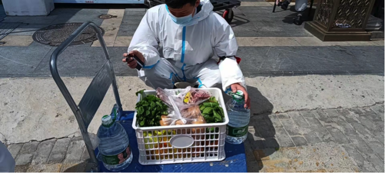 现在大多数订单都是买菜、买米、买药的订单,很多求助人都希望我买尽可能多的东西,为了凑齐,我会跑好几个店,因为很多店就只剩下水果,或者只剩下一点蔬菜,所以经常是大多数时间都花在采购上,买东西两三个小时是很正常的。有时候也确实买不到了,他们都跟我说能理解。