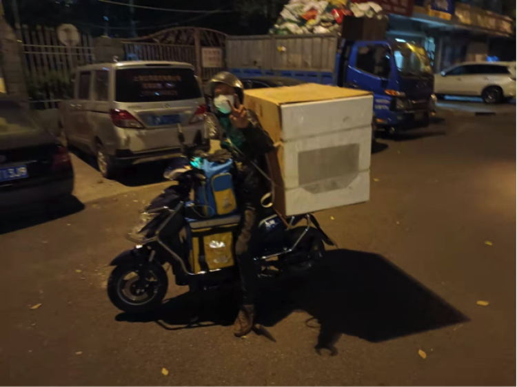 这几天跑单也确实累得不行,经常晚上躺下就不想动了。但是我不敢停下来,一打开微信就好多人求我帮忙,抖音里也有好多人给我私信。最困难的就是起床那一小会,真正跑在路上送单,也就没那么累了。