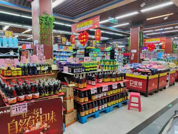 大哥在门口拿了个小推篮,想了想,又拿了一个。大哥首先奔往生鲜区,苹果、竹笋、猪蹄……大哥每样挑了点,“今天先买点家里人爱吃的!”一袋盐、一瓶可乐、一大包纸巾、洗衣液……很快,两个小推篮就都满了。此时,人渐渐多了起来,货架上也出现了一些“空缺”,但是很快,超市工作人员抱着箱子来补“缺”。大哥这时信了进来时工作人员的“保证”。