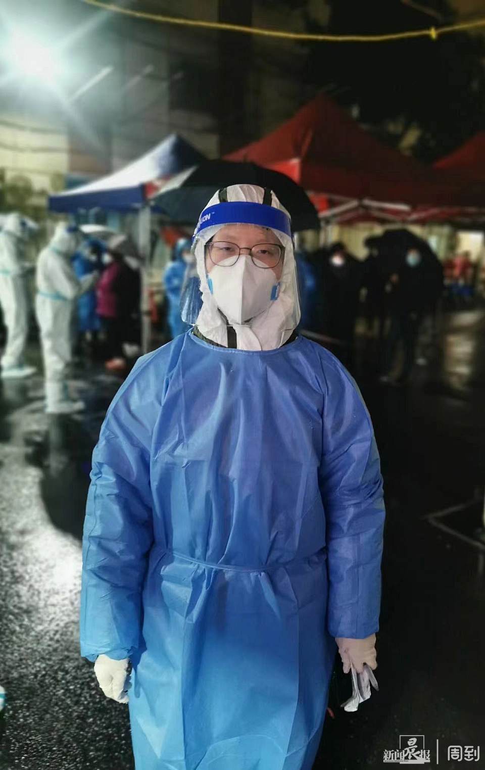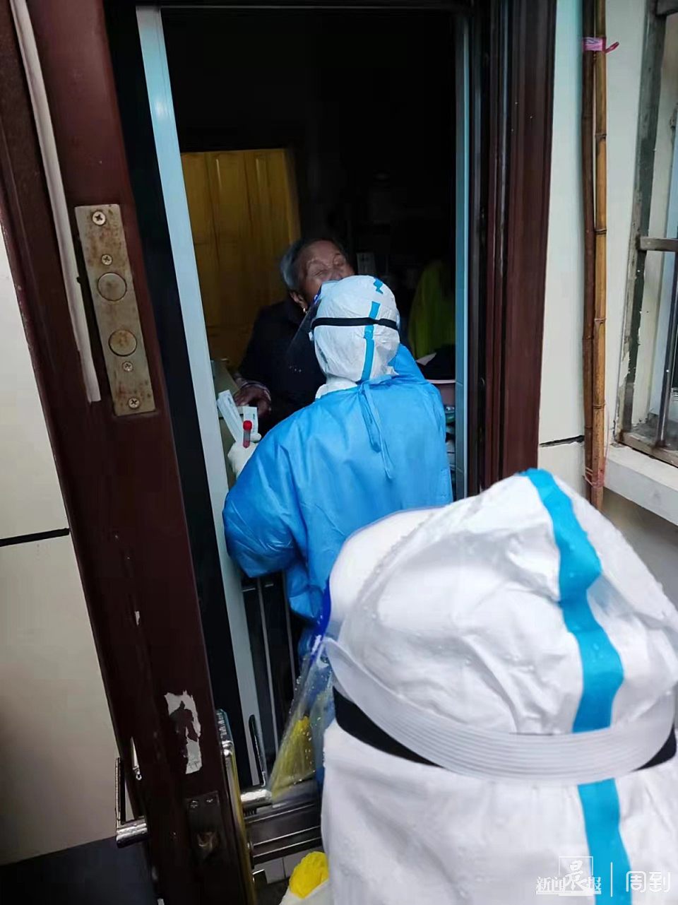 因为我负责的楼栋里有确诊病例,所以下午需要对其进行“一户一管”的单独采样。再次穿上防护服,赶赴相关楼栋现场。通过前期的耐心解释和安抚工作,我很高兴居民们能按照通知有序下楼采集核酸,他们的理解和支持是我们工作的最大动力。“你们辛苦了,谢谢你们!”对于楼栋内的高龄老人和重病在床患者,我和医生一起上门进行采集。对于已经在大雨中爬了94层楼,陪同医生走遍小区上门采集的我来说,这已经是轻车熟路了。我也第一时间和确诊患者取得联系,关心其身体和心理状况,安慰其不要紧张,放平心态,有任何不适及时报告。病毒无情人有情,我相信,人定胜天。