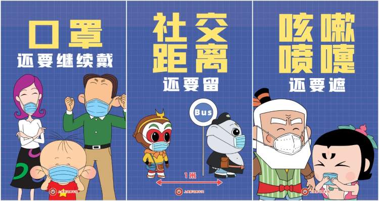 口罩还要戴、社交距离还要留、咳嗽喷嚏还要遮。