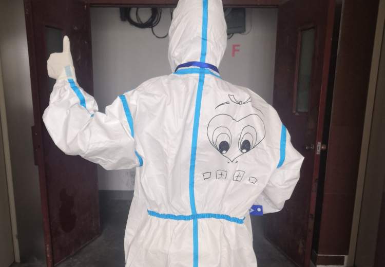 在这场“持久战”里,焦虑和紧张在所难免,志愿者们就想到在服装上“作文章”,让动画形象一扫人们心中的阴霾。