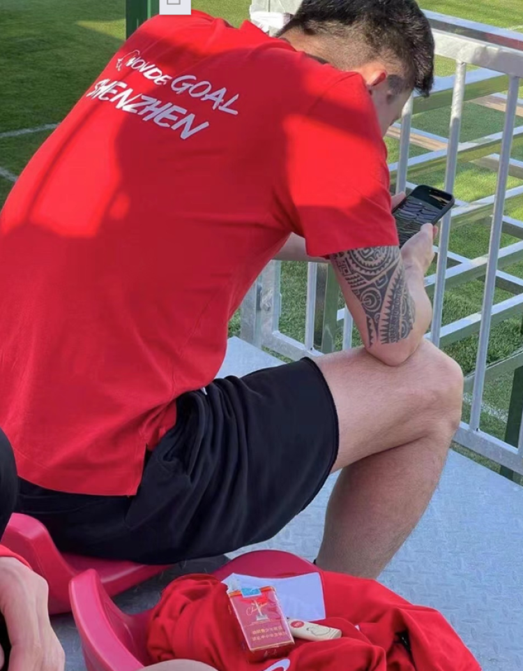 最近一段时间,中国足球引发关注的往往都是负面新闻。这回,一张身着红色深圳队T恤衫的球员照片引起了热议,大家关注的焦点是这名坐在场边的球员,身边放着香烟和打火机。放出这张照片的媒体人还爆料说,“某老国脚把中华带到热身赛场边,中国足球不彻底死一回,永远没戏!”