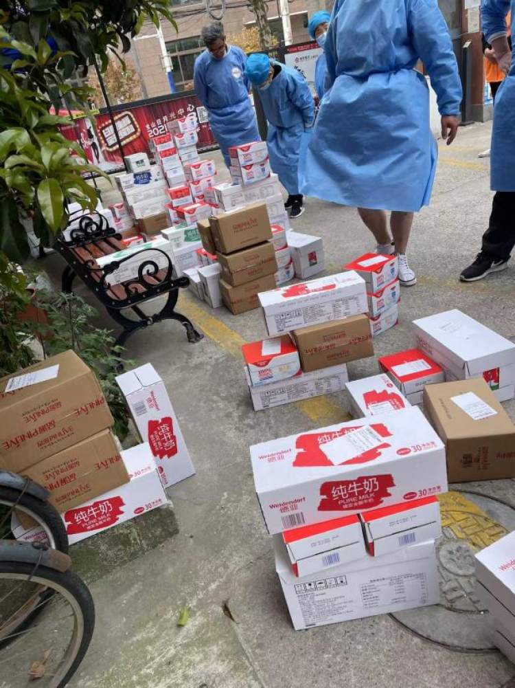 作为松江本地的企业,品渥食品股份有限公司时刻关注上海最新疫情情况,主动承担社会责任,3月29日,将价值几十万元的7000多箱德亚牛奶送至佘山镇慈善工作站,分配给多个点位的防疫工作人员及志愿者们,作为后勤保障,同时为佘山敬老院捐赠50组牛奶。