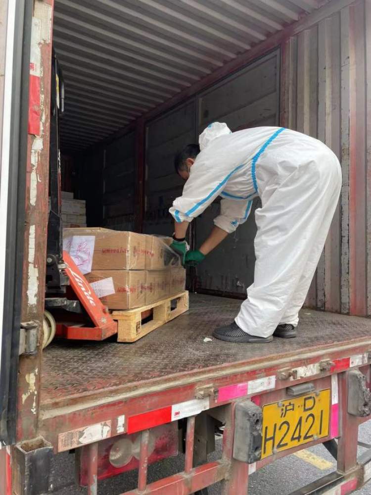 为快速将大批量货物送出,法务同事及时申请”上海市疫情防控生活物资保障企业证明“及通行证;品渥仓库员工已就地安排食宿,24小时不间断作业;运输处积极办证,调控车辆;园区作业人员、司机及装卸工等不间断收货,分拣与配送,尽力保障上海乳制品的供应。