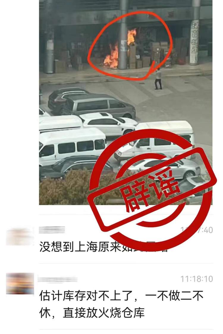 4月12日,网上流传“宝山区某存放蔬菜物资的仓库被人故意烧毁”的不实信息。