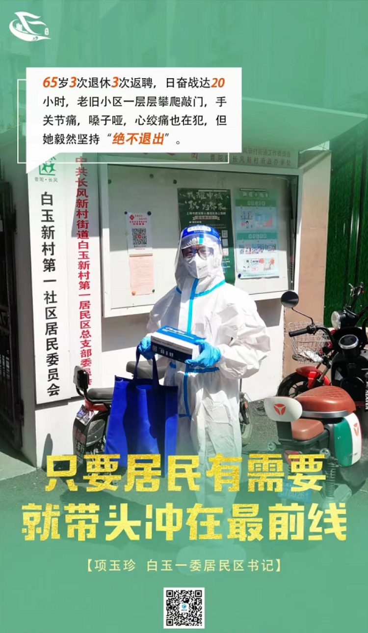 在先后三次退休三次被返聘后,今年65岁的项玉珍一跃成为长风街道年龄最大的一名居委书记,人送外号“拼命三娘”。在最艰难的时刻,生过大病的她克服身体极限,全力以赴冲在第一线,再次成为社区工作者和居民们的“主心骨”。
