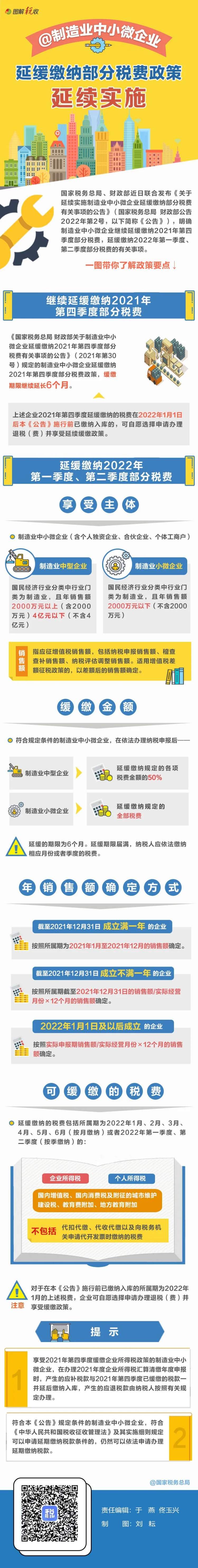 @制造业中小微企业:继续缓缴税费!一图读懂政策要点
