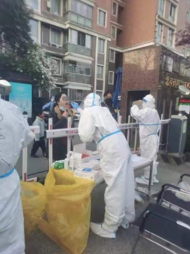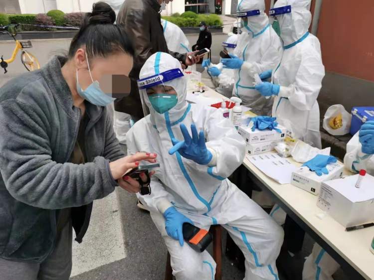 3月31日晚,鲍小刚所在的科室工作群中发布了一条消息,招募一线采样人员,大家纷纷主动请战。当天晚上11点,加入核酸队的医务人员们连夜集合,第二天开始投入核酸采样工作。