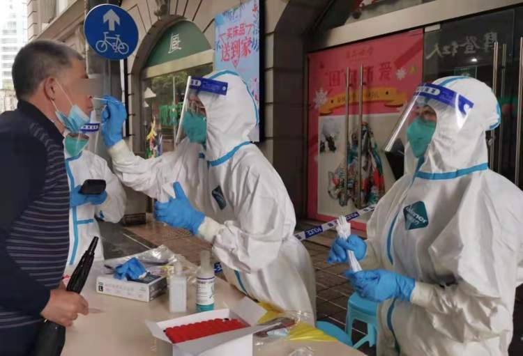 据悉,长征医院近期先后组织了两批核酸队,奔赴多个社区进行核酸采样,鲍小刚就是首批核酸队中的一员。