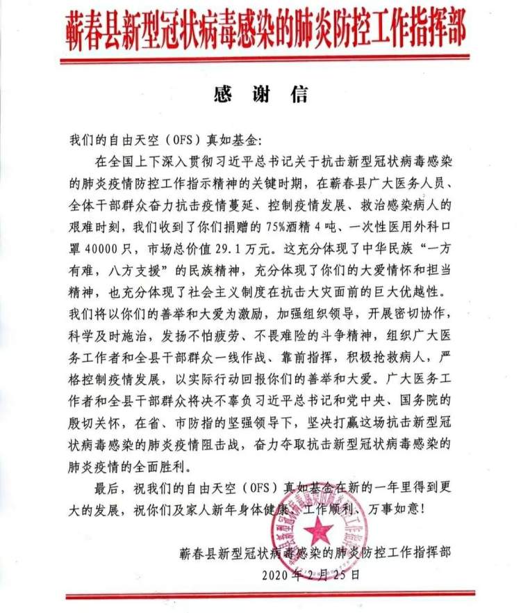 带着基金会准备的口罩和防护服,物流司机曾师傅驱车700多公里,将医疗物资送到了黄冈。之后,在基金会发起的抗疫募捐活动中,蔡女士也捐款表达了心意。