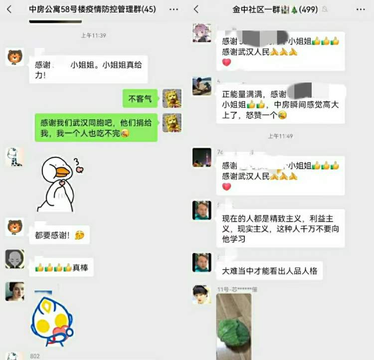 疫情期间,这些批武汉市梦园冷链物流有限公司捐赠的蔬菜弥足珍贵。收件人蔡女士就住在这个小区,但她被疫情封控在家,无法下楼。按照之前沟通好的方案,这些菜被分给了小区每一户居民。