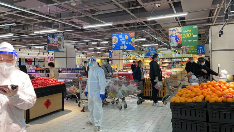 作为最早发布分区的金山,目前金山区内已开放了大卖场、超市、母婴店等五类场所。防范区内的居民可凭通行证前往就近商超购物。4月13日9点,世纪联华金山石化店正式对外营业,当日店内客流量超过1500人,门店在开业前已落实全部消杀工作,所有工作人员身穿防护服,在进行核酸测试后上岗。