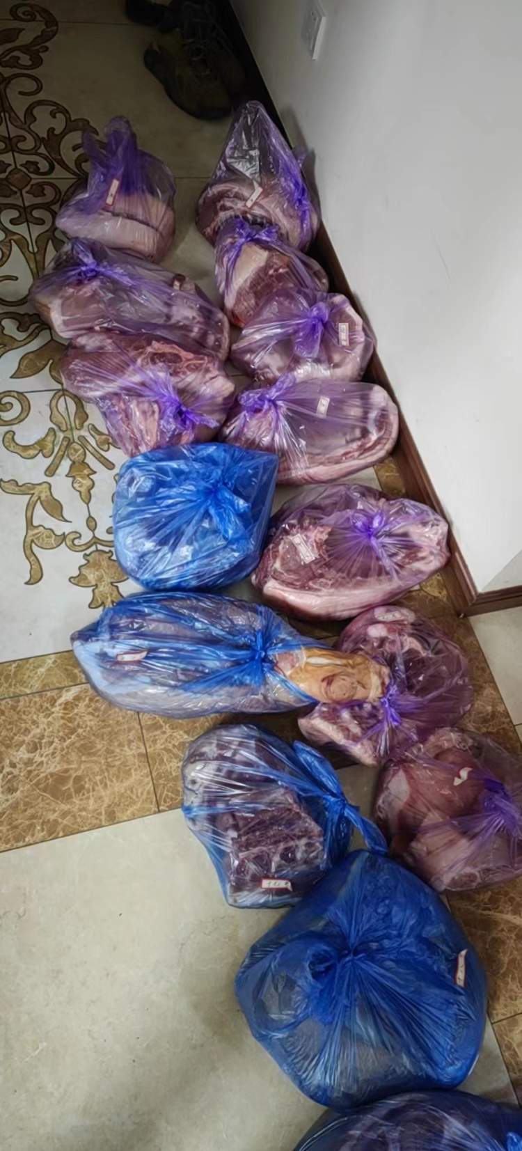 整个切割过程进行了一个多小时。然后我们就开始派送,送完最后一包猪肉,已经是晚上10点多了。这一次比上次顺利得太多太多了,感谢水果小哥,感谢教授。