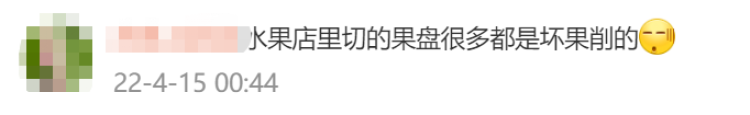 还有人提醒,有些水果店里的水果盘是坏果削的,所以也尽量少吃为妙。