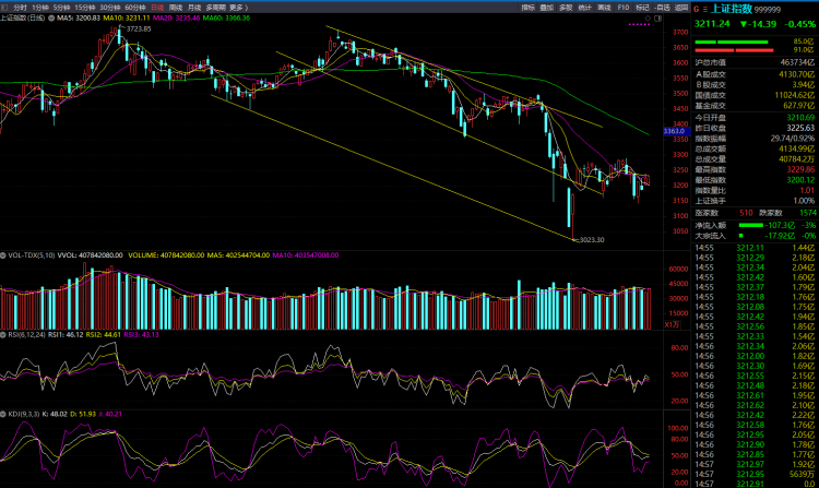 今天,沪深两市双双低开,盘中电力板块异动,闽东电力涨停;东数西算概念股短线拉升,立昂技术涨超10%;午后银行、证券板块一度有所反弹,但持续性不够。最后尾盘再次跳水,沪市下跌0.45%,报收3211点;创业板下跌0.24%,报收2460点。两市成交额突破9000亿元。