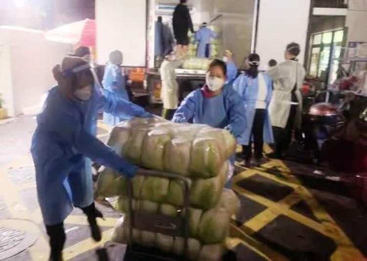 长风三村居委、志愿者连夜搬运物资