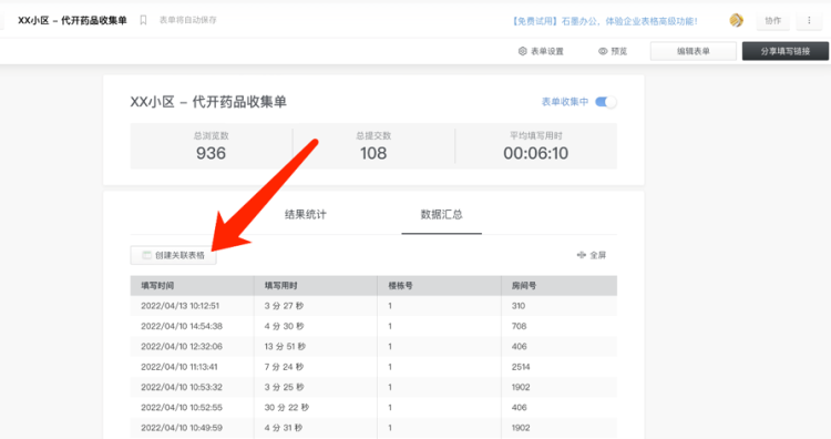 问卷收集完创建关联表格。