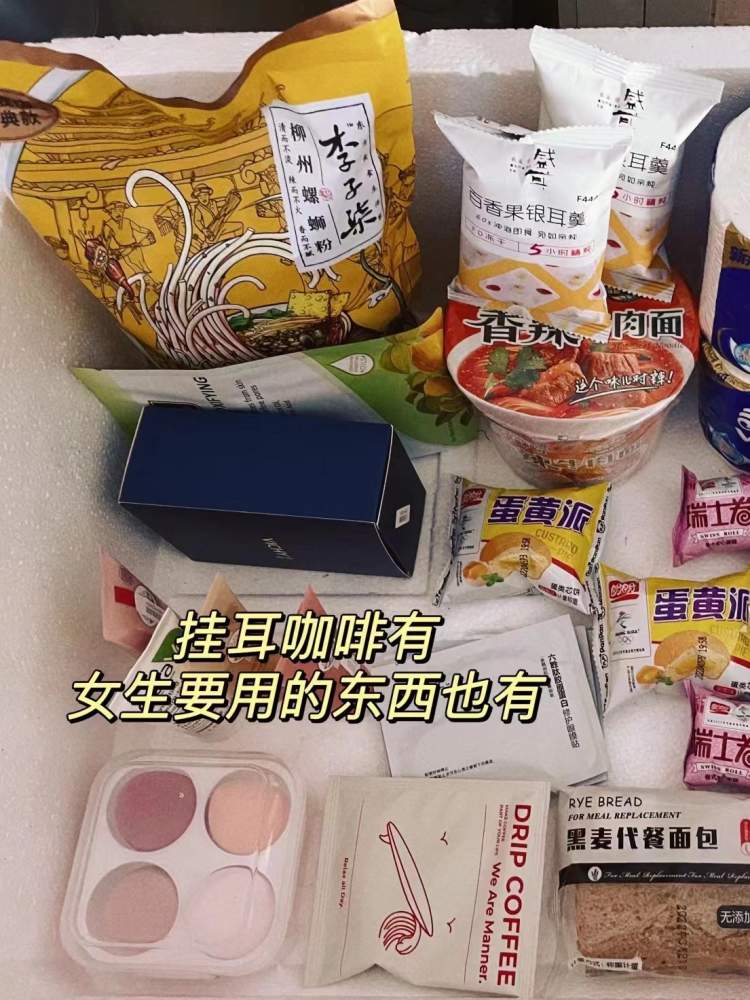 以小舒所在的楼栋为例,从志愿者最初尝试性地放了7枚鸡蛋开始,驿站里逐渐加入了蔬果、麦片、牛奶、螺蛳粉、自嗨锅,以及纸巾、美妆蛋、洗衣凝珠等等生活日用品,且“肉眼可见”都是“好东西”,甚至“硬通货”。