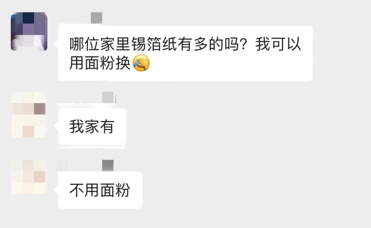 封控在家近2周,记者所在的小区居民也已经养成了“缺啥先群里吼一声”的好习惯,从最开始的两包小馄饨换来了一瓶鲜酱油,刷新了居家新体验——
