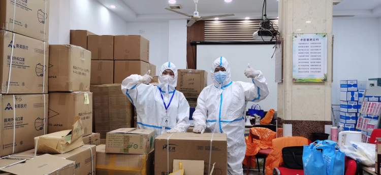在志愿者队伍越来越庞大的同时,防疫物资的需求也越来越大,早在4月5日,居委的防疫物资就已经面临紧缺。在得知物资紧缺后,华山丽苑业主群的大家迅速集结起来,找到了可靠的物资购买渠道,按照居委提供的物资需求清单,我们当天便顺利捐赠了120箱物资给到小区和居委会,包括防护服、口罩、酒精、大喷壶等,共同解决了眼下这一紧急情况。平时联系很少的外国居民也积极热情地加入到这场“物资保卫战”中来,为此次物资捐赠贡献了力量。后续的几天,这些物资被送到了幸福居委各个小区,大家都很高兴能为社区的平安出份力。