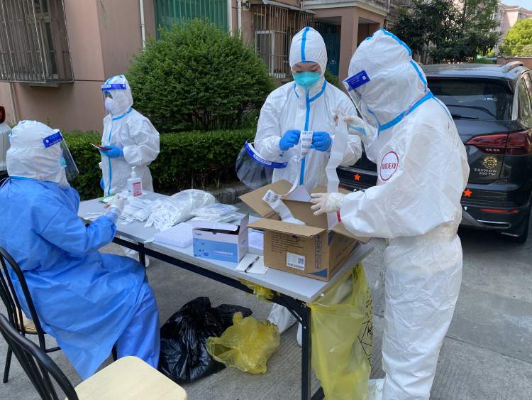 后来居民们成立了50多人的志愿者队,分别进行卸货分发、配药拿药、核酸和抗原检测等服务,队伍管理逐渐走上正轨。王佳俊也第一次穿上了大白防护服继续志愿服务,他形容那是一种“仿佛套在塑料袋里”的感觉,闷热难耐。