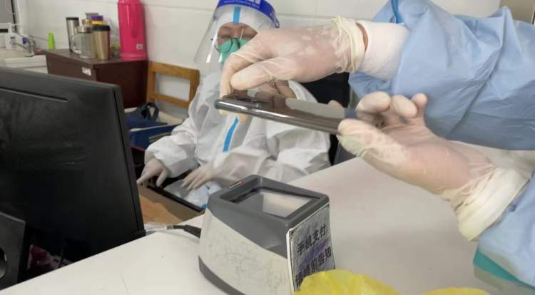 到了封控楼栋收病历本的时间,社工顾颖穿上大白服,去收医保卡。1个多小时后,封控楼栋居民的医保卡集满了整整一大箱。